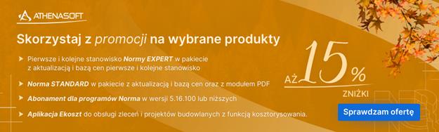 Do 14 października br. zapraszamy do skorzystania ze specjalnych cen na zakup oprogramowanie kosztorysowego Norma EXPERT i Norma STANDARD oraz aktualizacji dla tych programów. W ramach promocji dostępne są wybrane warianty programów, szczegóły sprawdź w naszym sklepie internetowym: sklep.komako.pl